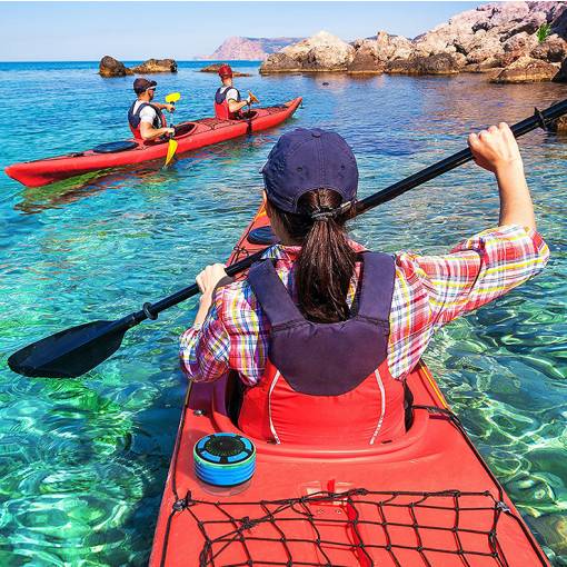Pachetul conține un difuzor portabil, rezistent la apă.