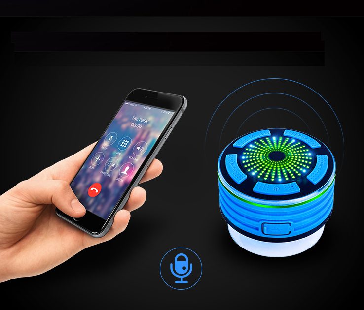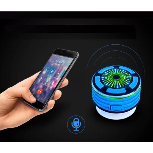 Difuzor bluetooth fără fir cu iluminare LED, suport de prindere și carabină.