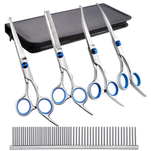 Set de foarfece pentru îngrijirea blănii câinilor cu vârfuri rotunde de siguranță din oțel inoxidabil.