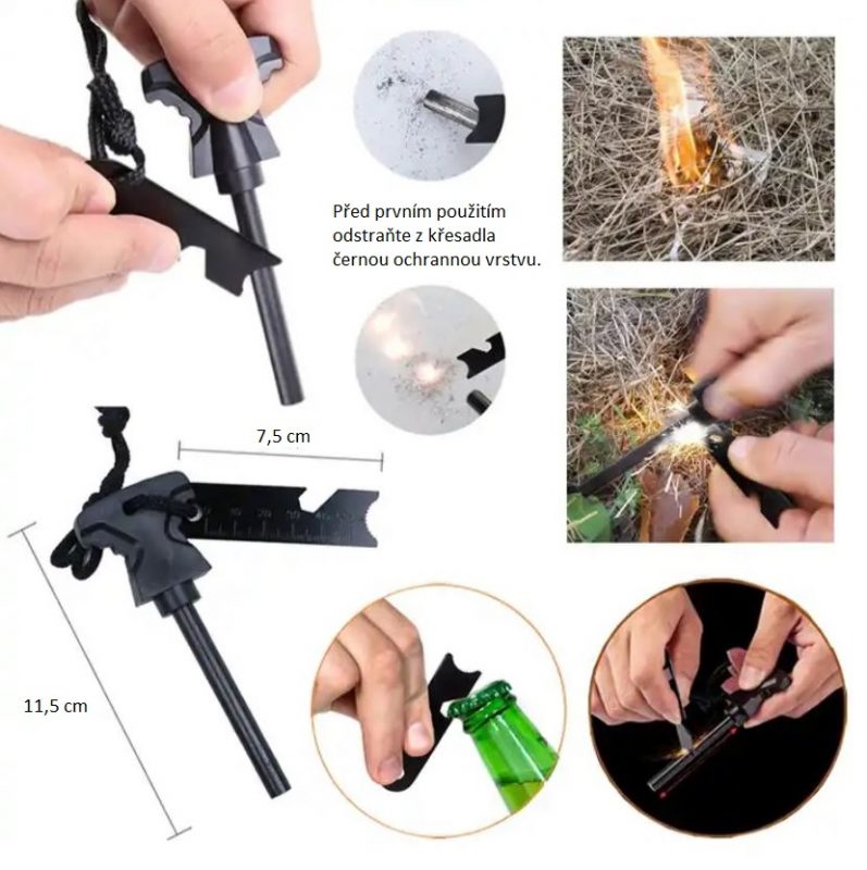 Chibrit: Corpul dintr-o tijă de magneziu, care este capabilă să genereze scântei cu ajutorul unui șipcu metalic pentru a aprinde focul.