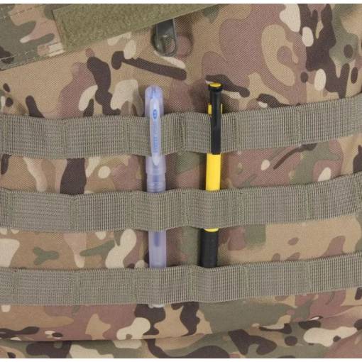Legătura MOLLE: Principala caracteristică a acestui rucsac este multiplele rânduri de legătura MOLLE, care poate fi utilizată pentru a atașa multe alte pungi, leziuni sau buzunare. Sistemul este prevăzut pe fața rucsacului.