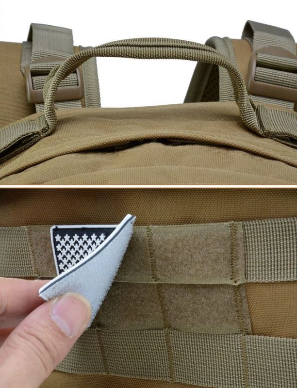 Rucsacul oferă catarame laterale fixe pentru ajustarea dimensiunii, un mâner robust pentru o manipulare mai bună și Velcro-uri pentru personalizarea rucsacului prin atașarea insignei.