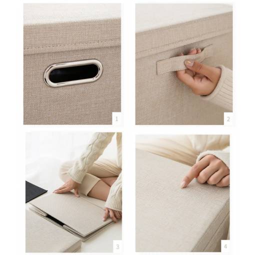 Cutii de depozitare practice, perfecte pentru a fi utilizate pe rafturi; sunt fabricate din material netesut, ecologic și foarte rezistent.