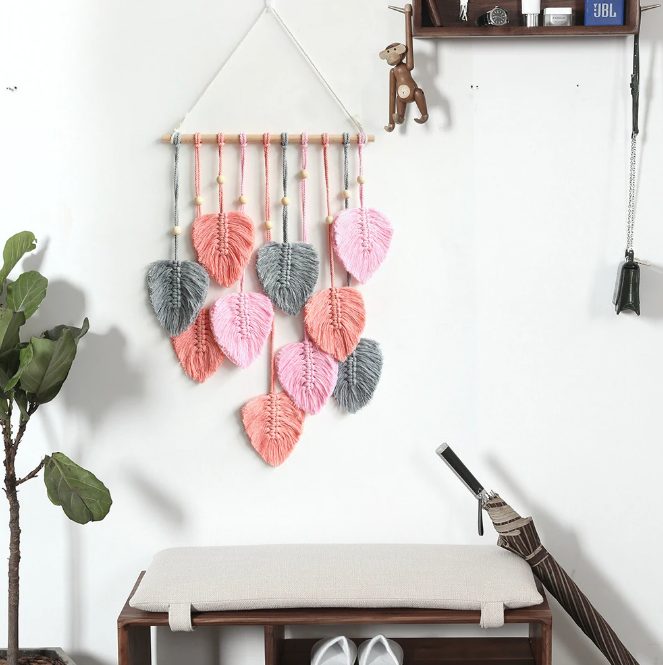 Material: această captatoare de vise - decor de perete - este țesut manual din fir 100% bumbac.