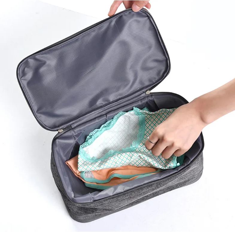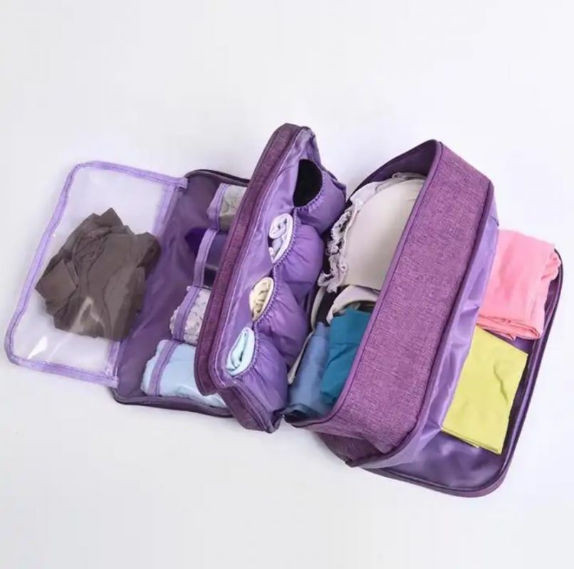 Un organizator practic pe trei niveluri pentru lenjerie, cosmetică sau alte piese mici de echipament care vă va ajuta să separați ușor și clar articolele individuale și să mențineți ordinea în lucrurile dumneavoastră chiar și în timpul călătoriilor.