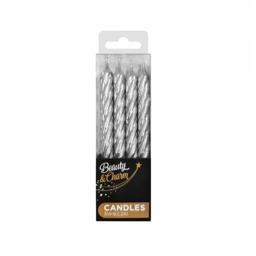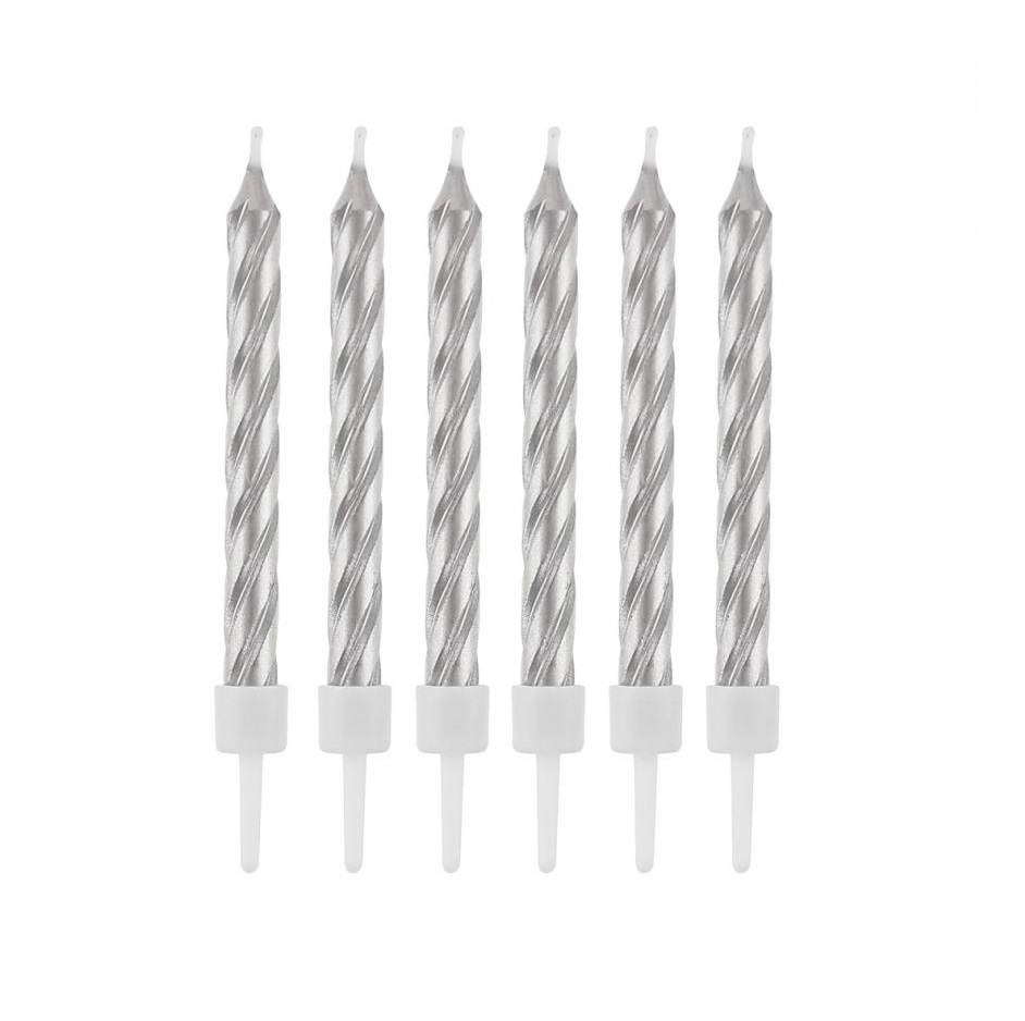 lumânări de tort - argintii, 12 buc