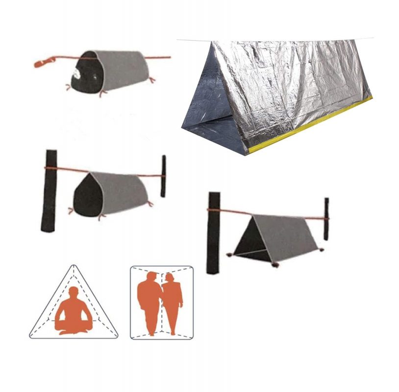 Universal: cortul de urgență poate fi folosit ca adăpost de supraviețuire, pătura de urgență, suport pentru sac de dormit sau foaie impermeabilă.