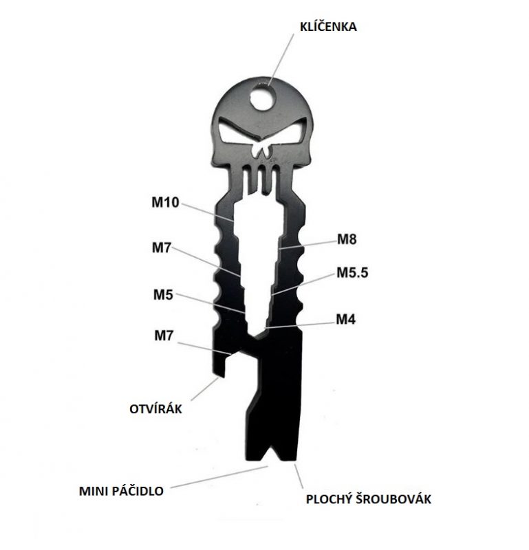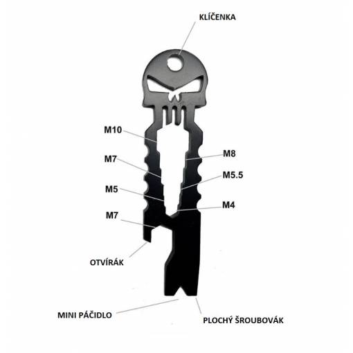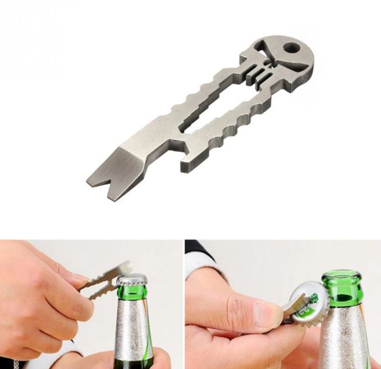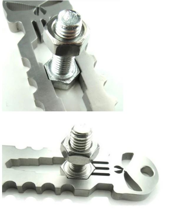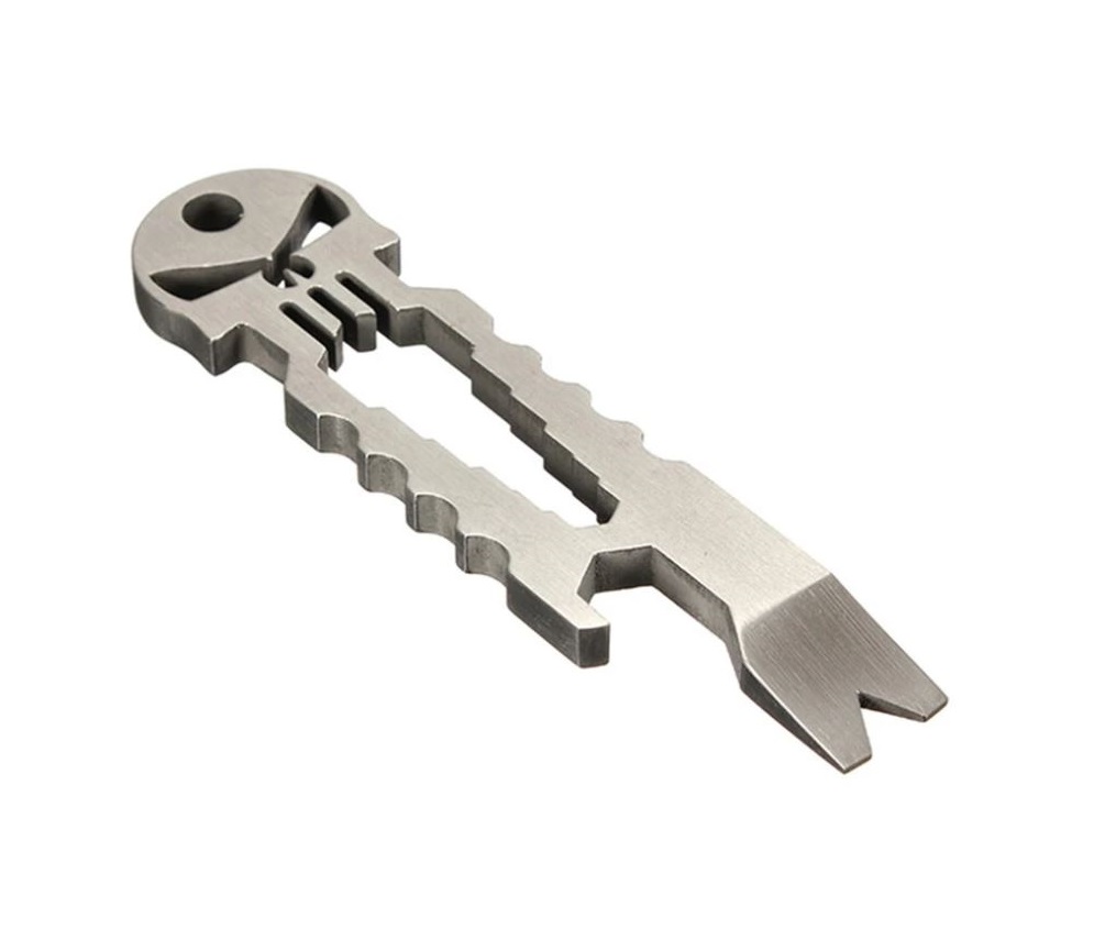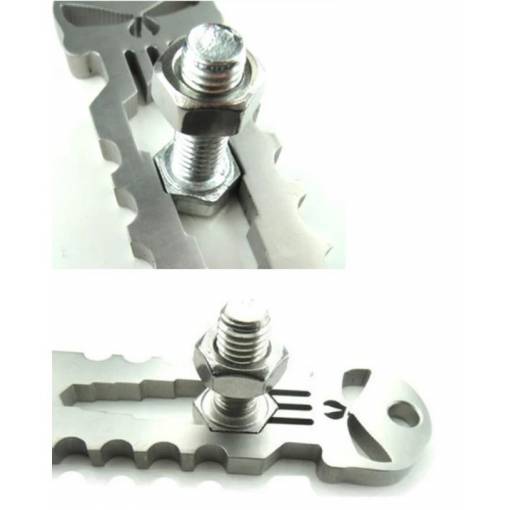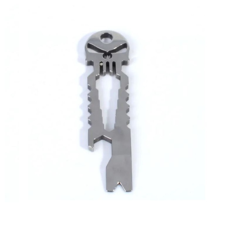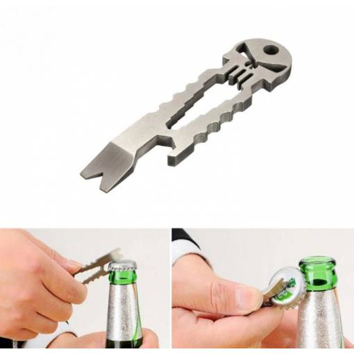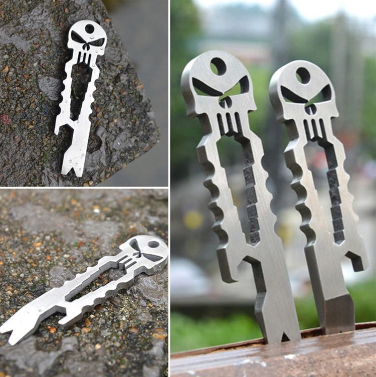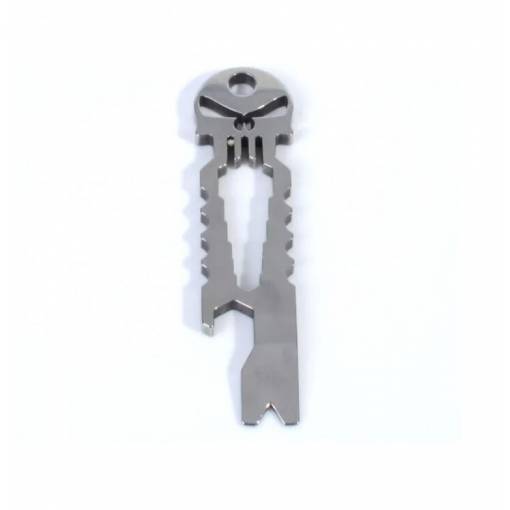 Multitool-ul cu craniu argintiu este un accesoriu stylish, care înlocuiește deschizătorul de sticle, cheia pentru mai multe dimensiuni de șuruburi, șurubelnița plată și cleștele de buzunar.