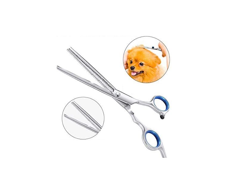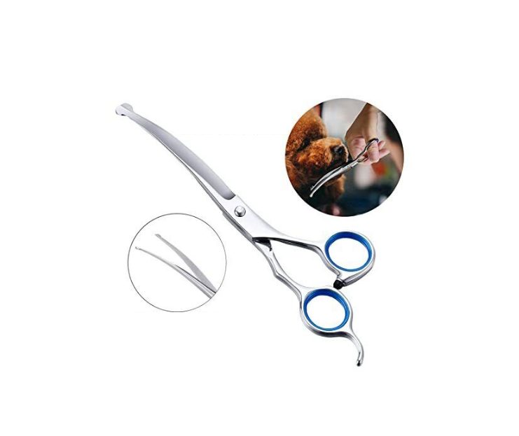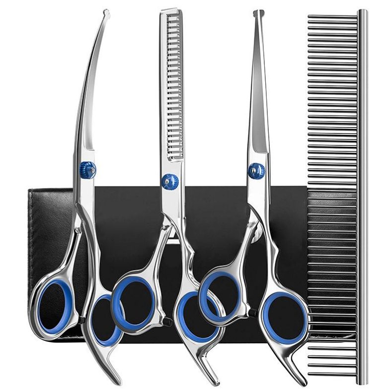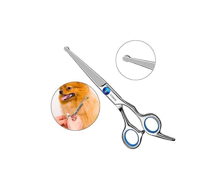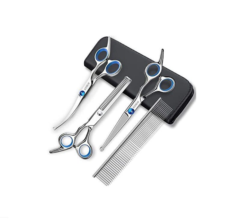 Set de foarfece pentru îngrijirea blăniei câinilor, cu vârfuri de siguranță rotunde din oțel inoxidabil.