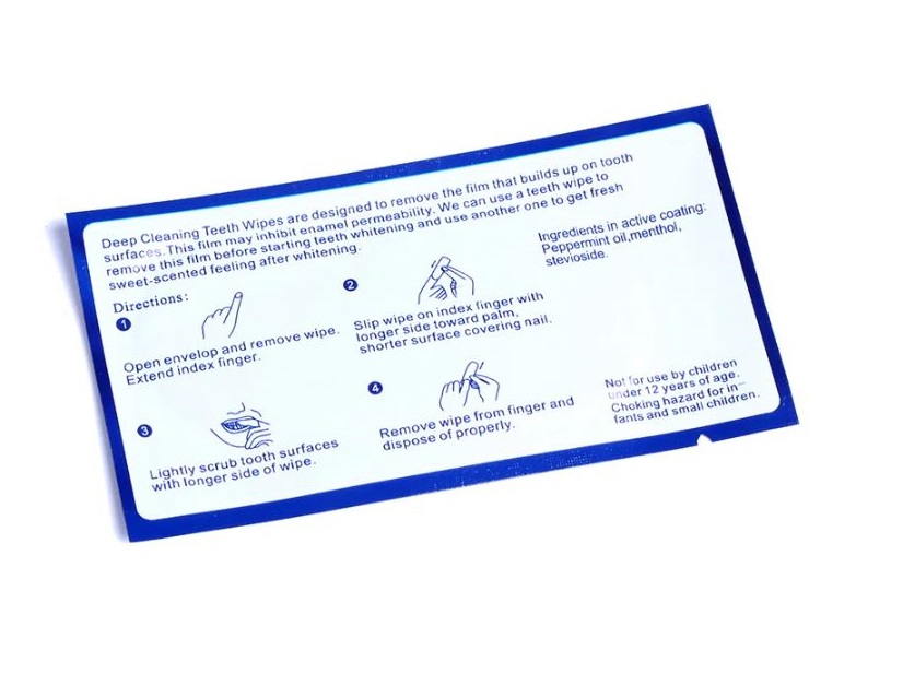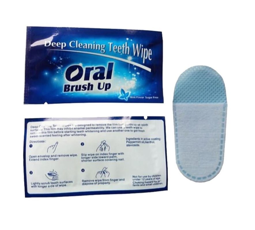 Pachetul conține un șervețel de curățare de unică folosință pentru dinți.