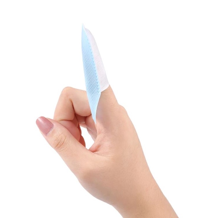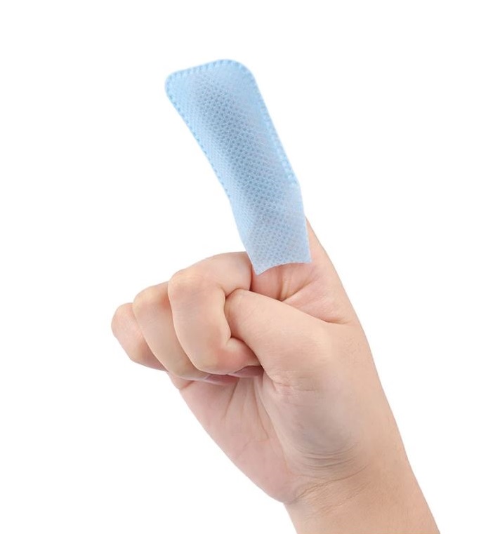 Șervețelul ambalat individual are formă de "deget", care poate fi ușor aplicată pe majoritatea dimensiunilor degetelor.