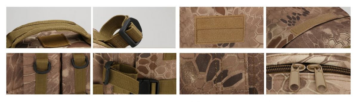 Sistem MOLLE: Principala caracteristică a acestui rucsac este mai multe rânduri de sistem MOLLE, care poate fi folosit pentru a atașa multe alte pungi, rucsaci și buzunare.