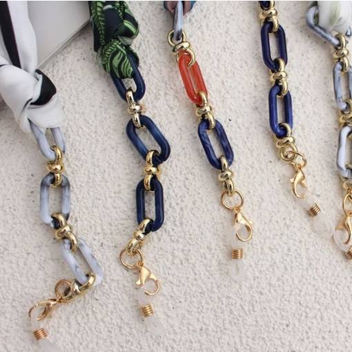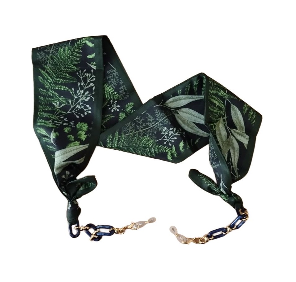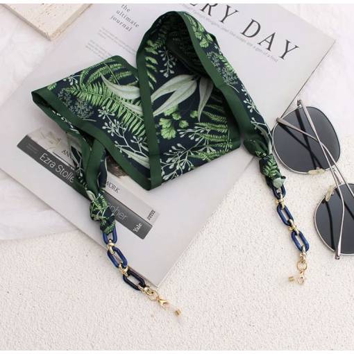 Eșarfa din mătase cu un lanț acrilic pentru suspendarea ochelarilor în jurul gâtului nu este doar practică, ci servește și ca un accessory de modă superb.