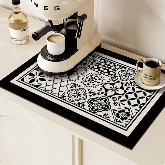 Covorașul are multe utilizări în gospodăria ta. Poate fi plasat oriunde vrei să absoarbă apă, de exemplu lângă aparatul de cafea, lângă chiuvetă sau în baie.