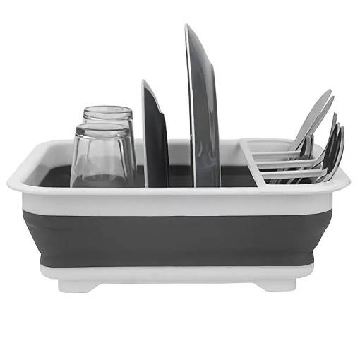 Suportul are spațiu pentru farfurii și cratițe, precum și un scurgător pentru tacâmuri separat.