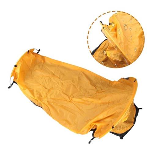 Se potrivește fără dificultate în orice rucsac sau geantă de bicicletă, iar desfășurat măsoară 220 x 90 x 50 cm.