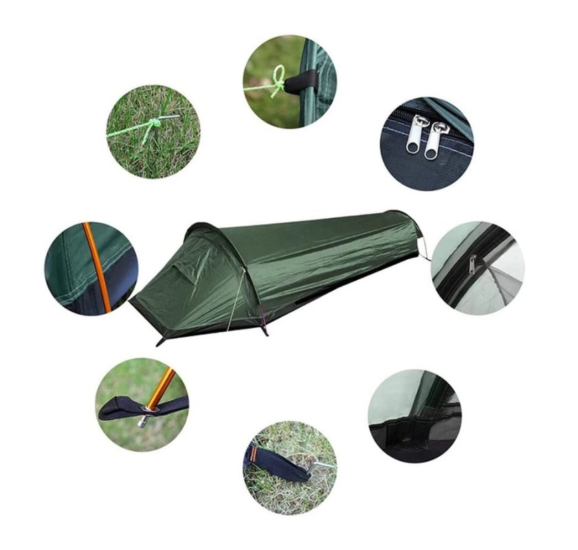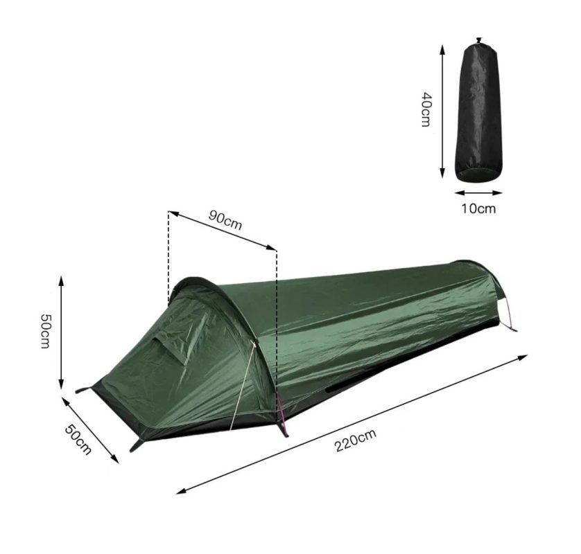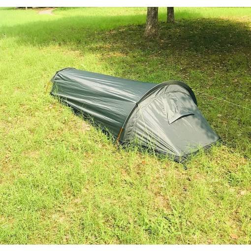 Cortul ultra-ușor tip bivy, care cântărește doar 0,8 kg și în stare pliată măsoară doar 40 x 10 x 10 cm, oferă o ambalare compactă și confort optim pentru o persoană.