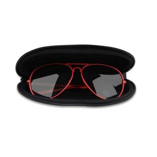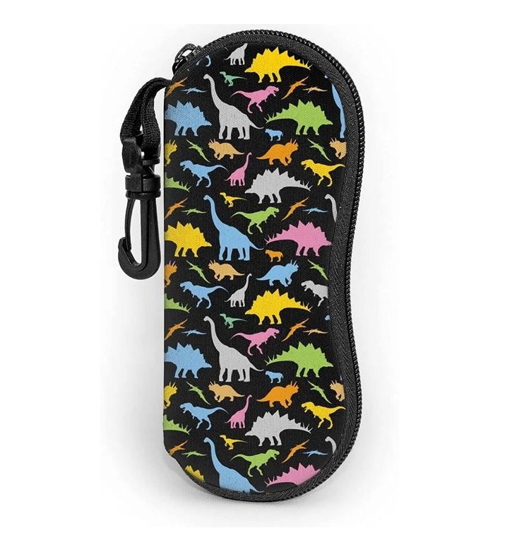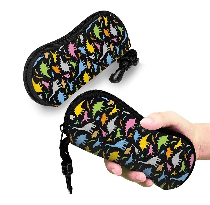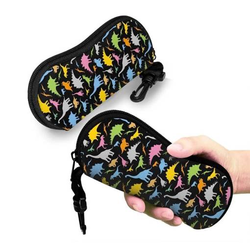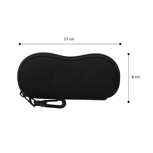 Husă moale din neopren cu închidere tip fermoar și carabină pentru agățare pe rucsac sau geantă, potrivită pentru majoritatea tipurilor de ochelari.