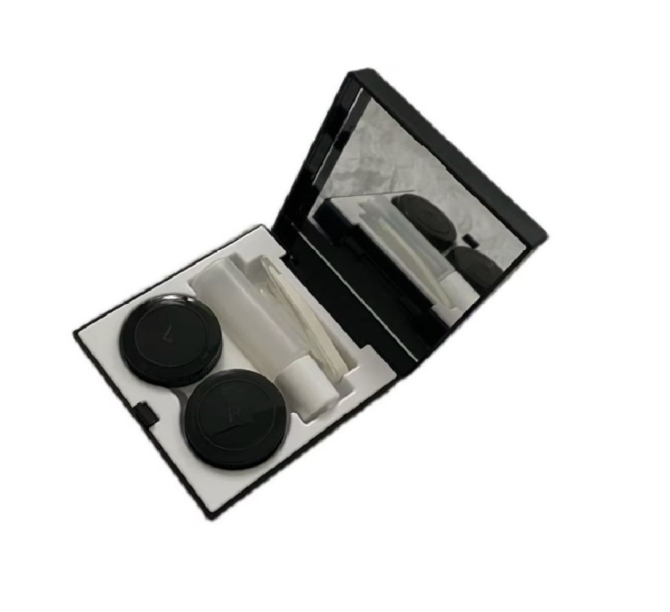Pachetul include cutia și husa pentru lentilele de contact, un recipient pentru soluție, o pensetă și un aplicator pentru lentilele de contact.