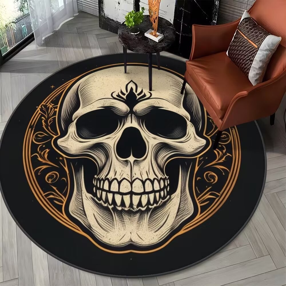 Aceast covor unic cu model de craniu înconjurat de ornamente aurii este un simbol profund al conexiunii între viață și moarte, natură și lumea spirituală.