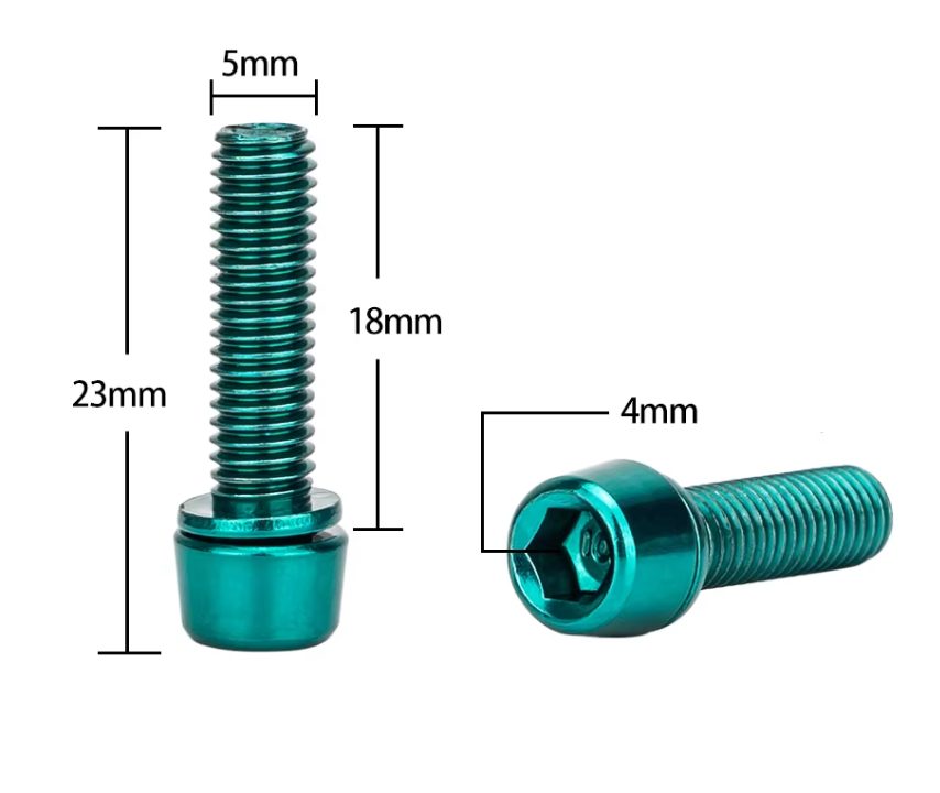 Șuruburi din titan destinate fixării ghidonului bicicletelor de ciclism. Datorită filetului precis, rezistenței ridicate și greutății reduse, reprezintă alegerea ideală pentru cicliștii exigenți care țin la fiabilitate și aspectul bicicletei lor. Potrivit pentru biciclete de munte (MTB), de șosea și de oraș.