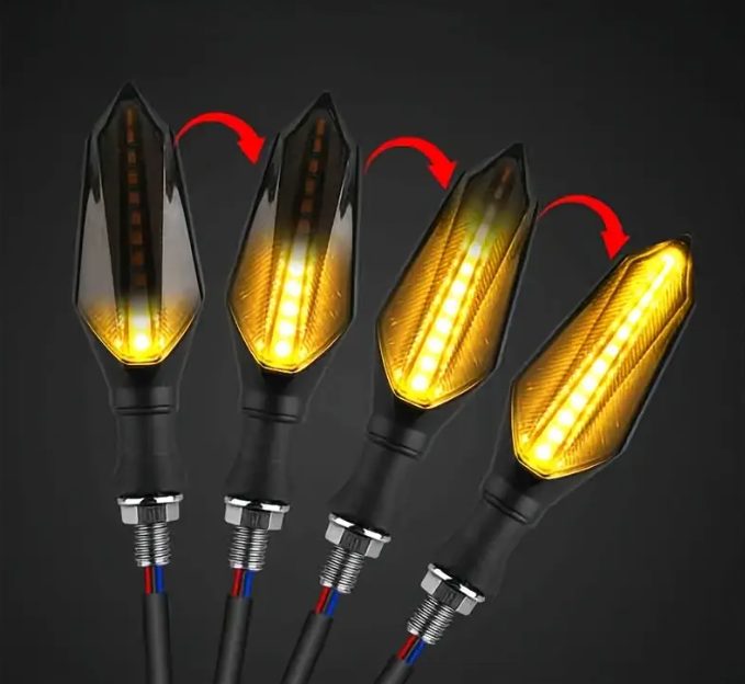 Oferiți motocicletei dumneavoastră un aspect modern și, în același timp, creșteți siguranța pe drumuri cu aceste elegante semnale LED cu efect dinamic. Datorită efectului de iluminare secvențial, acestea atrag atenția de la prima vedere și asigură că veți fi bine vizibil în orice situație.