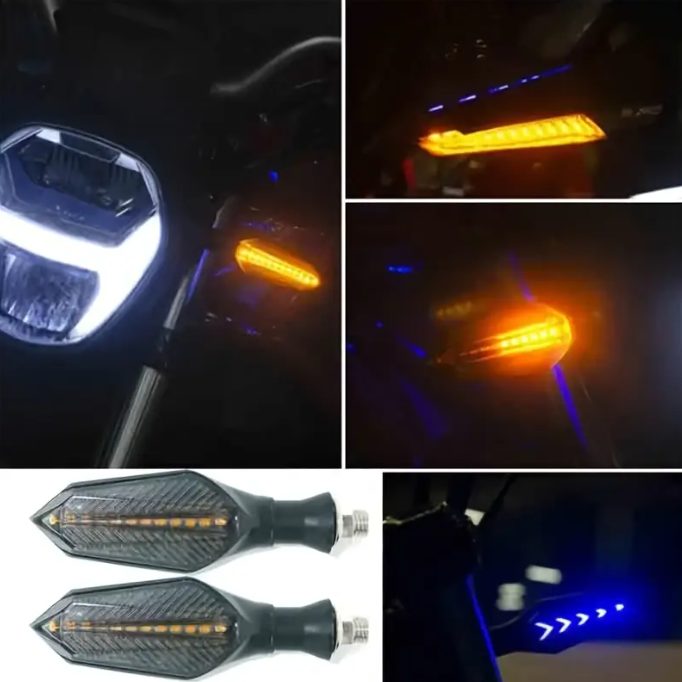 Aceste semnale combină funcții de lumină de semnal, lumină de frână și lumină de contur (pulsator). Sunt fabricate din plastic ABS durabil și aluminiu, cu o construcție solidă și un capac din PC de calitate pentru o durată lungă de viață. Fiecare piesă conține 12 LED-uri puternice cu un consum redus, cu până la 80% mai puțin decât becurile obișnuite pentru aceeași intensitate de iluminare.