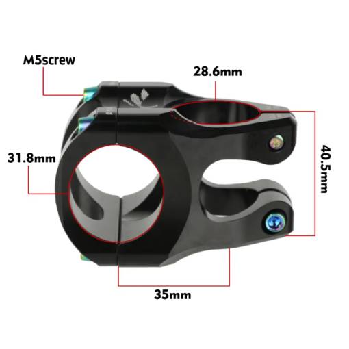 Fixarea pe ghidon cu diametru de 31,8 mm și tubular de 28,6 mm permite compatibilitatea cu majoritatea bicicletelor moderne. Aspectul stilat este accentuat de șuruburile cu efect titan, care nu doar că arată bine, dar oferă și o fixare solidă și sigură.