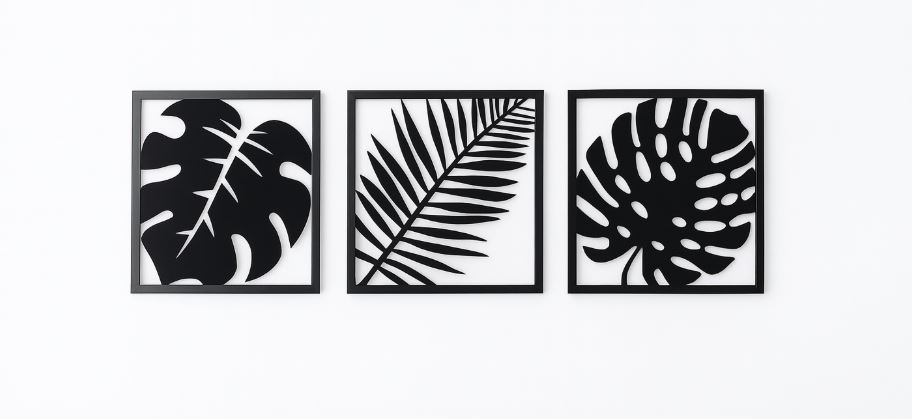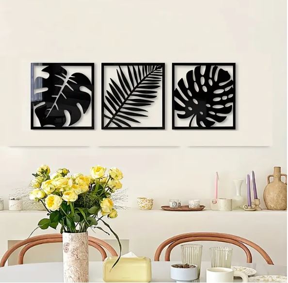 Adăugați stil și eleganță casei dumneavoastră cu această decorațiune modernă de perete sub formă de frunze negre de palmier. Designul minimalist și instalarea ușoară le fac un complement perfect pentru camera de zi, dormitor sau birou.