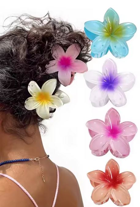 O clemă stilizată pentru păr în formă de floare hawaiană este un accesoriu ideal pentru zilele de vară. Își va menține părul strâns și va acționa ca o decorare modernă.