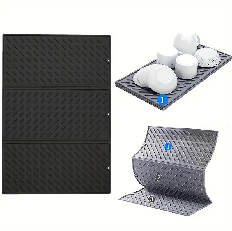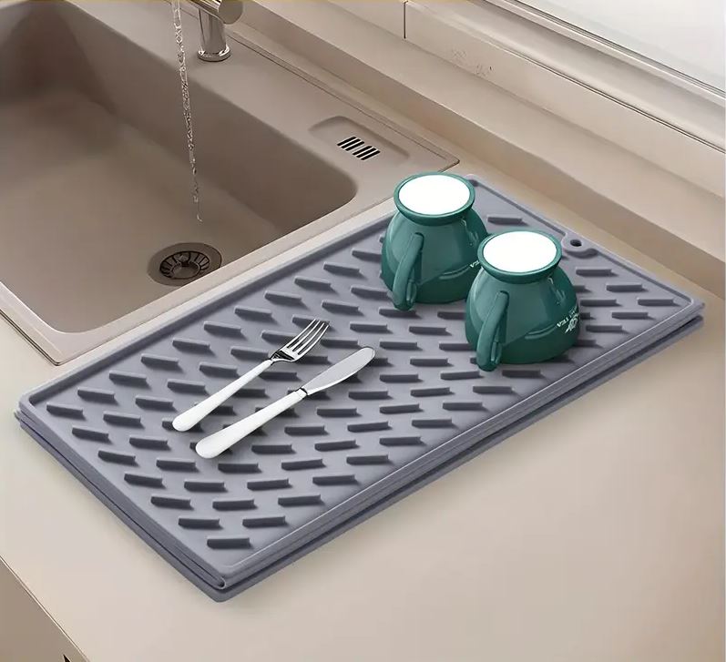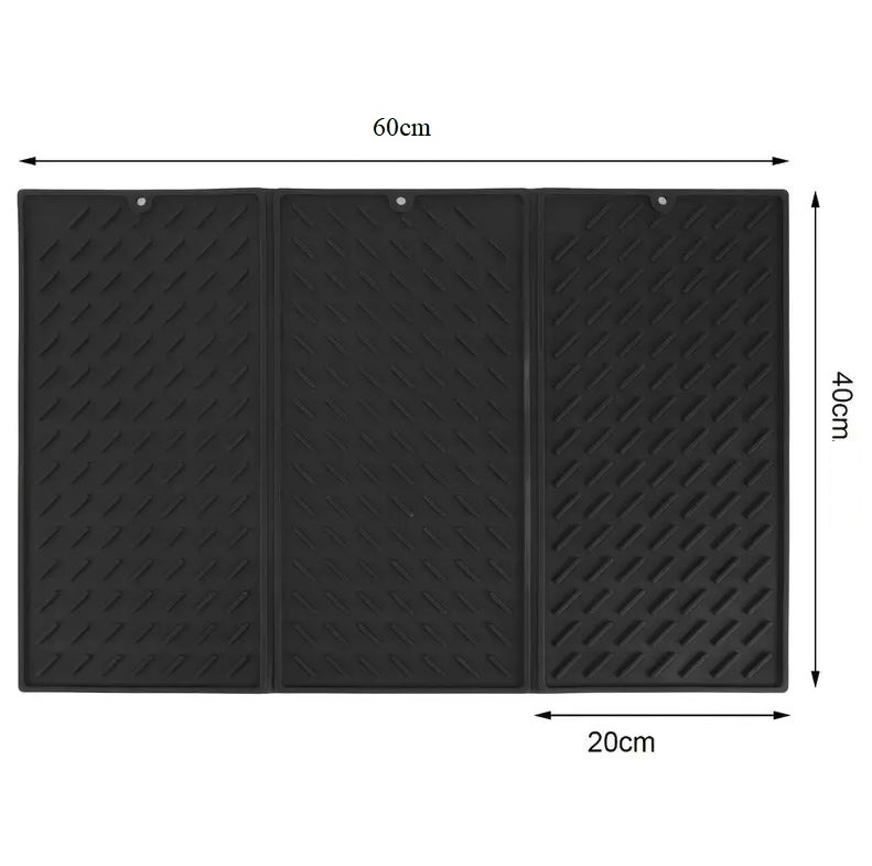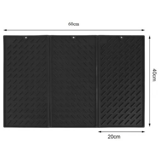 Placaj de silicon pliabil pentru uscarea vaselor cu dimensiunile 60 x 40 cm oferă suficient spațiu pentru uscarea farfuriilor, paharelor, oalelor, tigărilor și fructelor și legumelor proaspete.