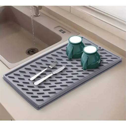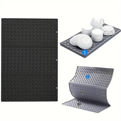 Placaj de silicon pliabil pentru uscarea vaselor cu dimensiunile 60 x 40 cm oferă suficient spațiu pentru uscarea farfuriilor, paharelor, oalelor, tigărilor și fructelor și legumelor proaspete.