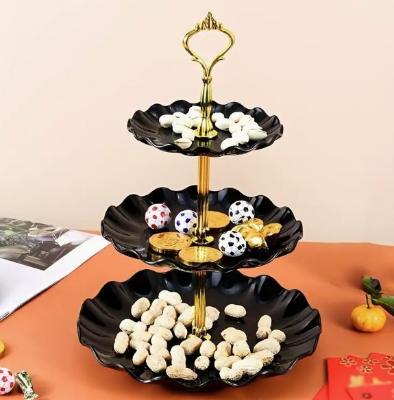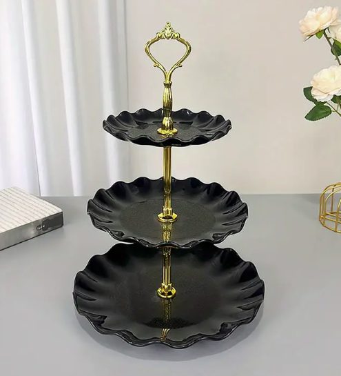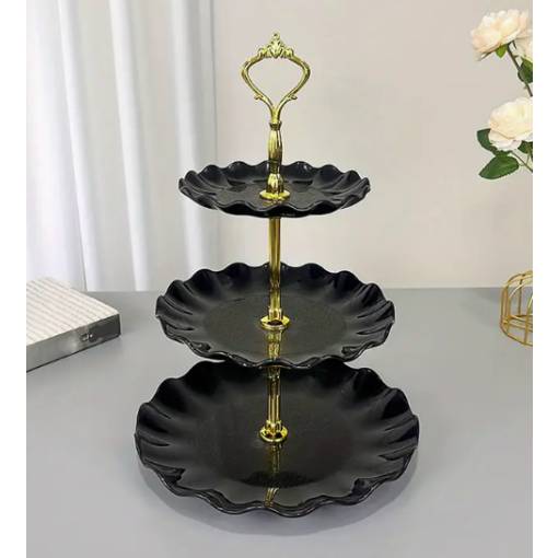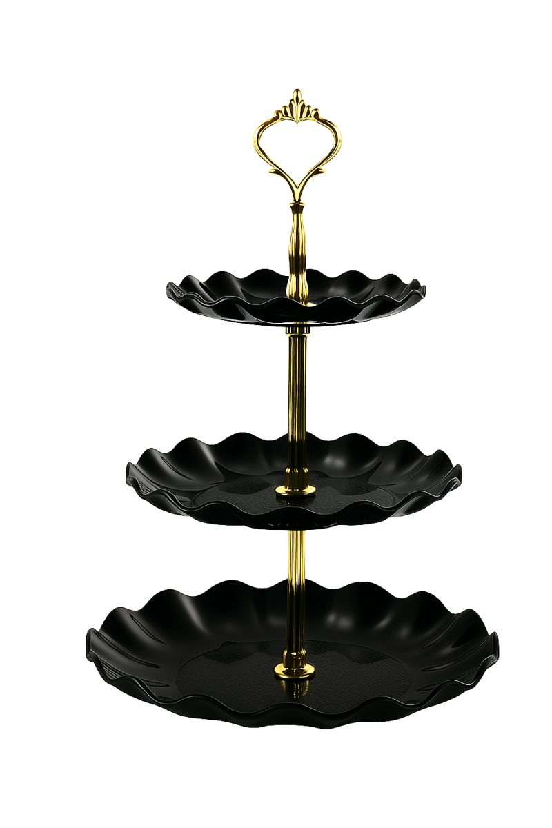 Această elegantă trecătre de servire se distinge prin designul său - cu margini negre ușor ondulate și construcție aurie. Este ideală pentru servirea aperitivelor, deserturilor sau fructelor la ocazii festive sau în timpul sărbătorilor de familie. Datorită mânerele utilizabil, se transportă ușor.