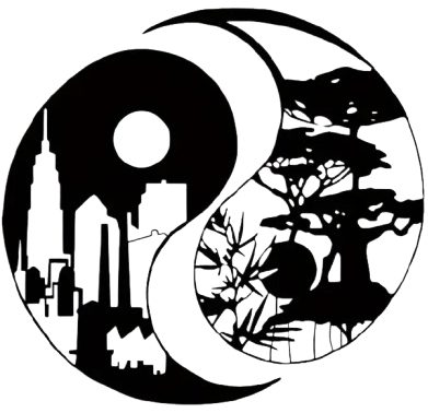 Această decorare unică îmbină contrastul dintre oraș și natură într-un întreg armonios inspirat de simbolul yin și yang.