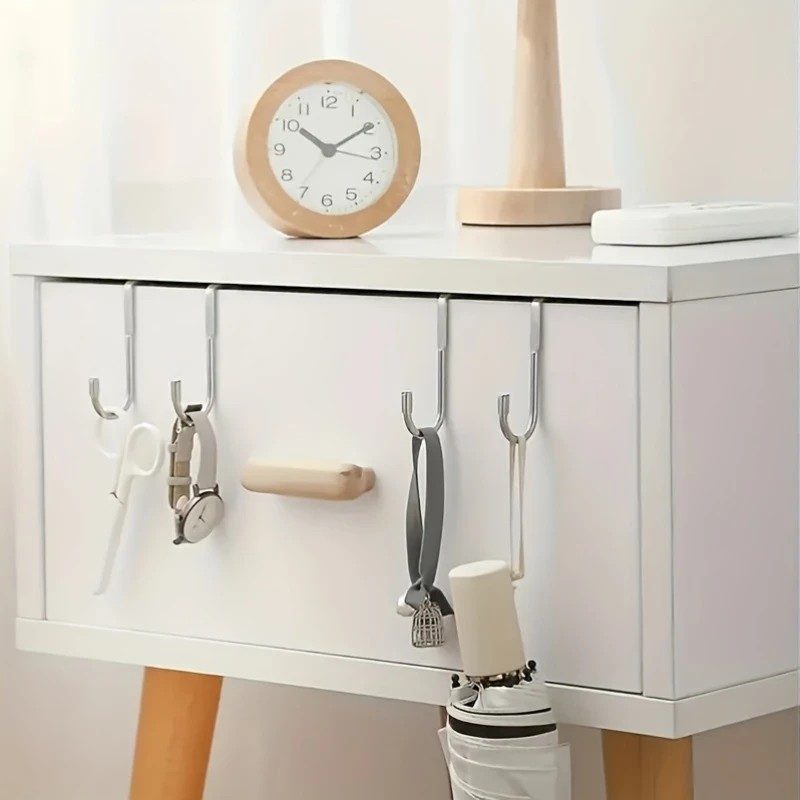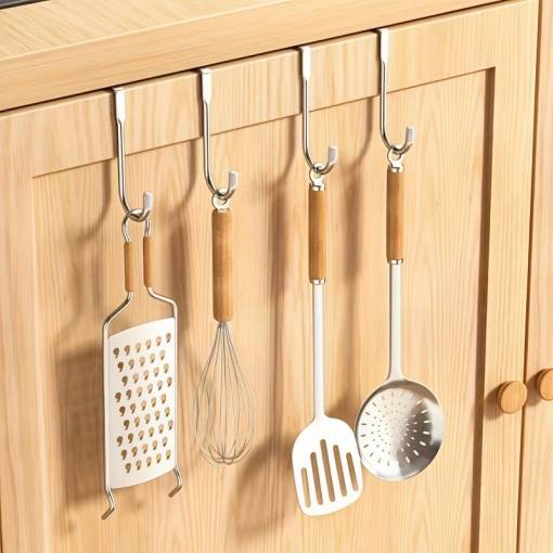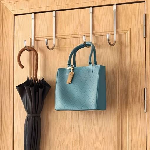 Acest cârlig din metal cu brațe duble se agăță cu ușurință de uși sau dulapuri. Ideal pentru prosoape, umbrele, rucsaci, sacoșe de cumpărături sau ustensile de bucătărie mici.
