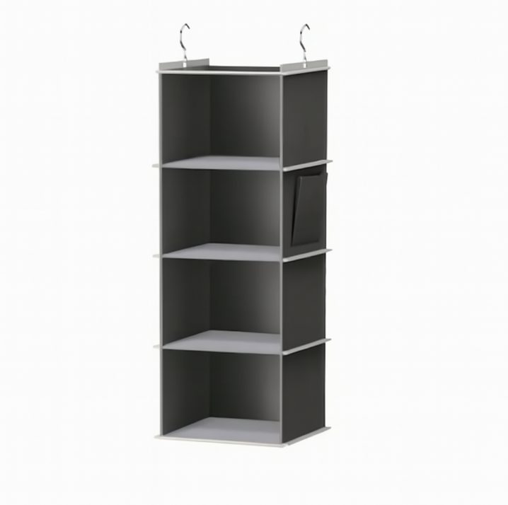 Această cutie suspendată este soluția ideală pentru orice garderobă, cameră de copii sau antichitate. Este echipată cu patru rafturi spațioase și se agăță cu ușurință folosind cele două cârlige metalice. Datorită materialului solid, își menține forma, în timp ce vopsirea într-o nuanță mai deschisă oferă un aspect modern și facilitează orientarea între compartimente.