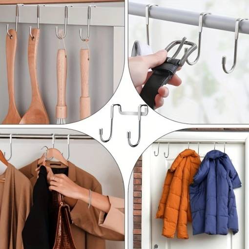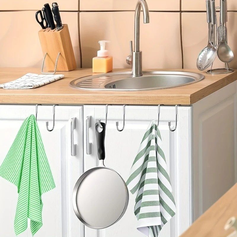 Acest cârlig din metal cu brațe duble se agăță cu ușurință de uși sau dulapuri. Ideal pentru prosoape, umbrele, rucsaci, sacoșe de cumpărături sau ustensile de bucătărie mici.