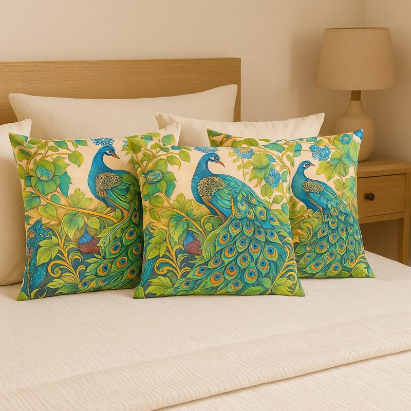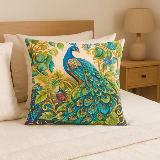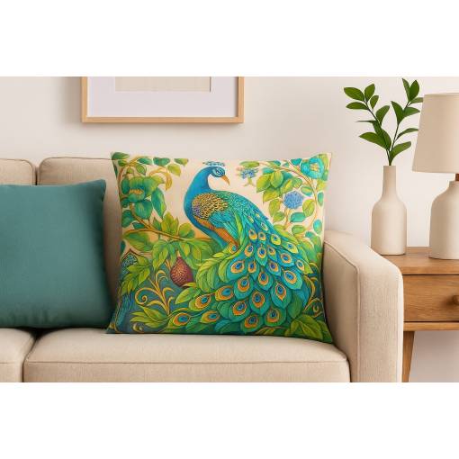 Husa de pernă 45 x 45 cm - Păun cu flori