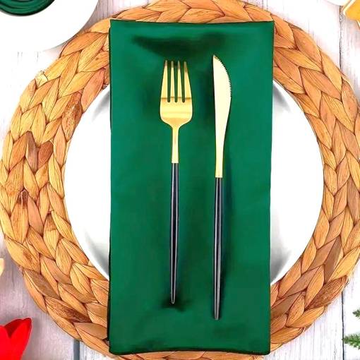 Șervețel elegant din material în nuanța verde intens - un accesoriu ideal pentru masa festivă, nuntă și mese de zi cu zi.