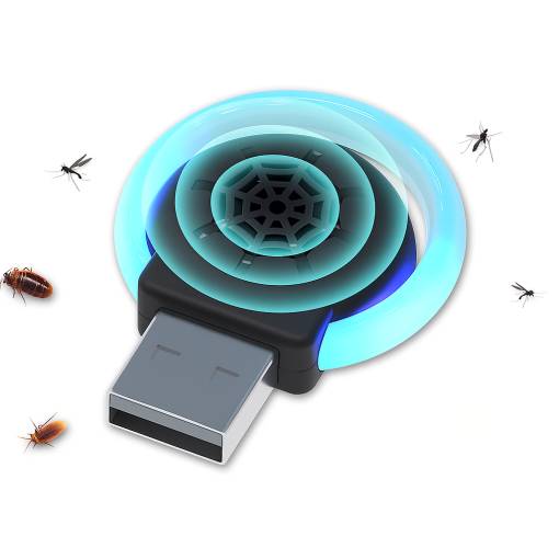 Repelentul USB ultrasonic este un dispozitiv mic și practic, care se conectează ușor la un port USB (de exemplu, în computer, power bank sau priza cu adaptor USB). Folosește unde sonore de înaltă frecvență, care sunt neplăcute pentru insectele mici.