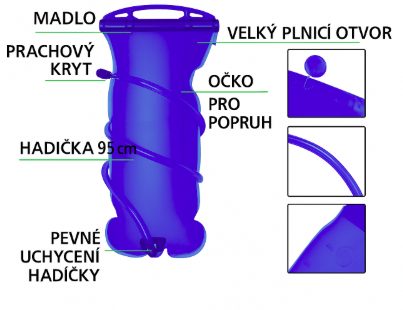 Ambalajul conține un sac de apă cu furtun pentru băut.