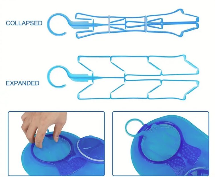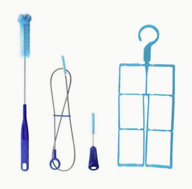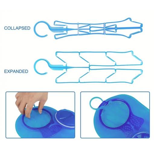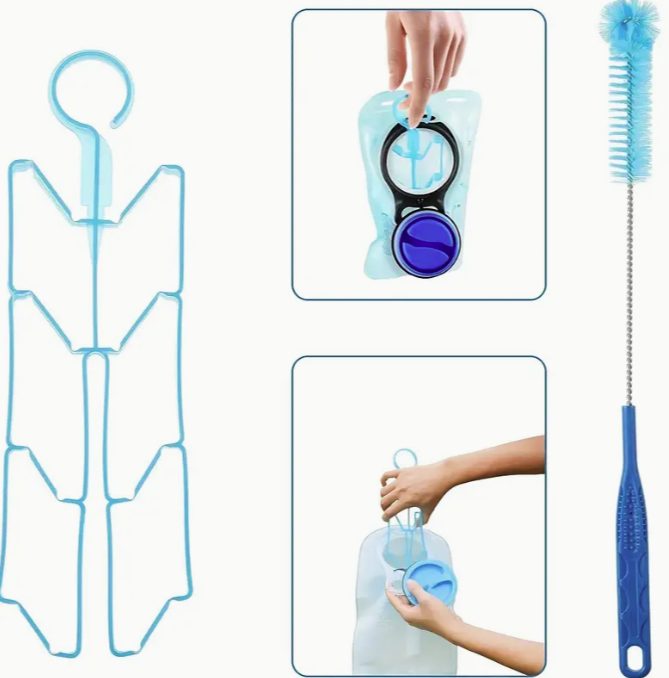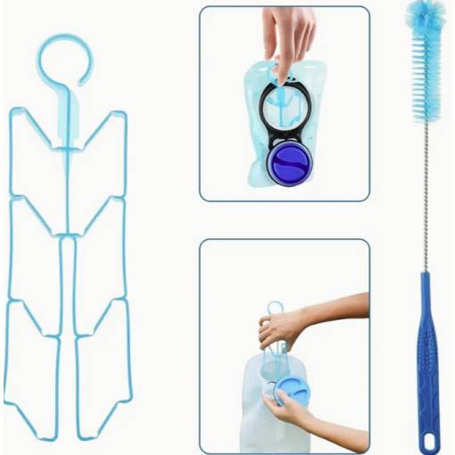 Rucsacul pliabil practic asigură uscare rapidă și temeinică fără formarea mucegaiului, în timp ce peria lungă cu fire rezistente și periuța compactă pentru furtun îndepărtează eficient toate depunerile.