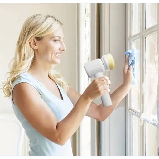Curățarea devine mai ușoară cu peria electrică multifuncțională 5 în 1 care îndepărtează eficient murdăria din casă. Cu capete de perie interschimbabile, este ideală pentru curățarea băilor, bucătăriilor, crăpăturilor, suprafețelor din sticlă și podelelor.