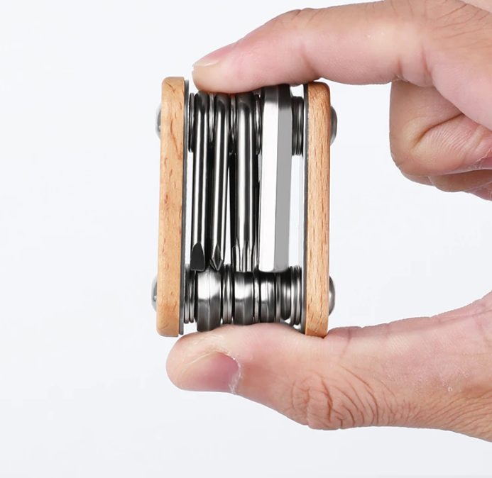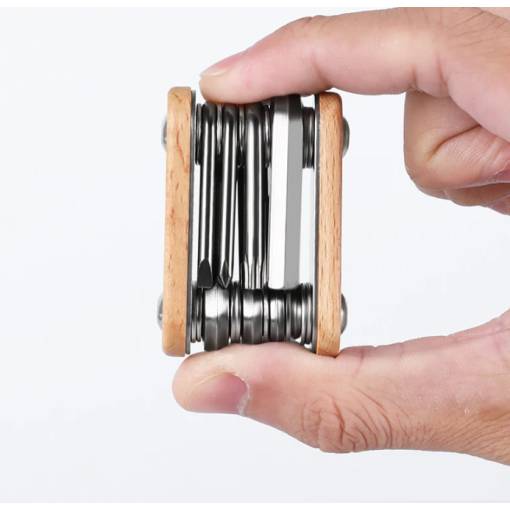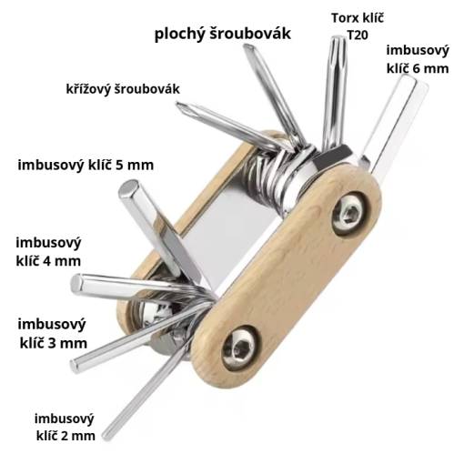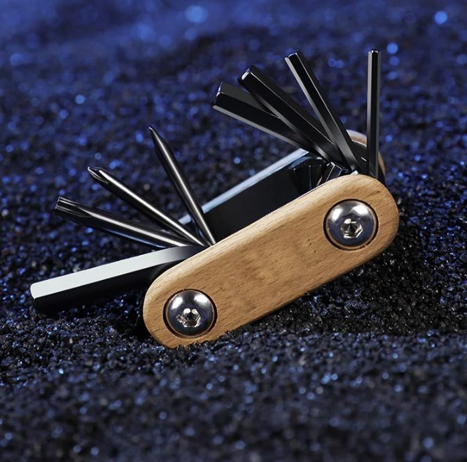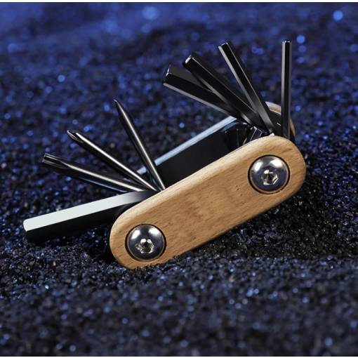 Conține 5 chei imbus (2/3/4/5/6 mm), cheie Torx (T20), șurubelniță cu cruce și șurubelniță plată – ideale pentru reparații rapide de urgență la fața locului. -