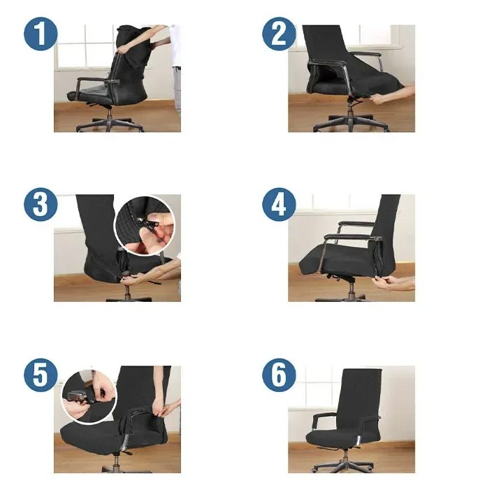 Husele sunt fabricate din material moale de velur (catifea) cu spandex elastic, astfel încât se adaptează perfect la majoritatea scaunelor de birou.
