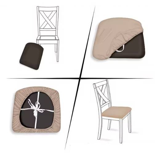 ✅ Ușor de pus și de fixat cu șnururi - pentru a obține un rezultat perfect, este necesar să deșurubați perna șezutului, să fixați husa și să atașați spătarul pernei șezutului