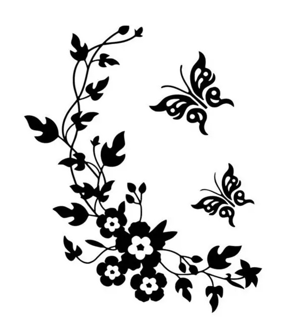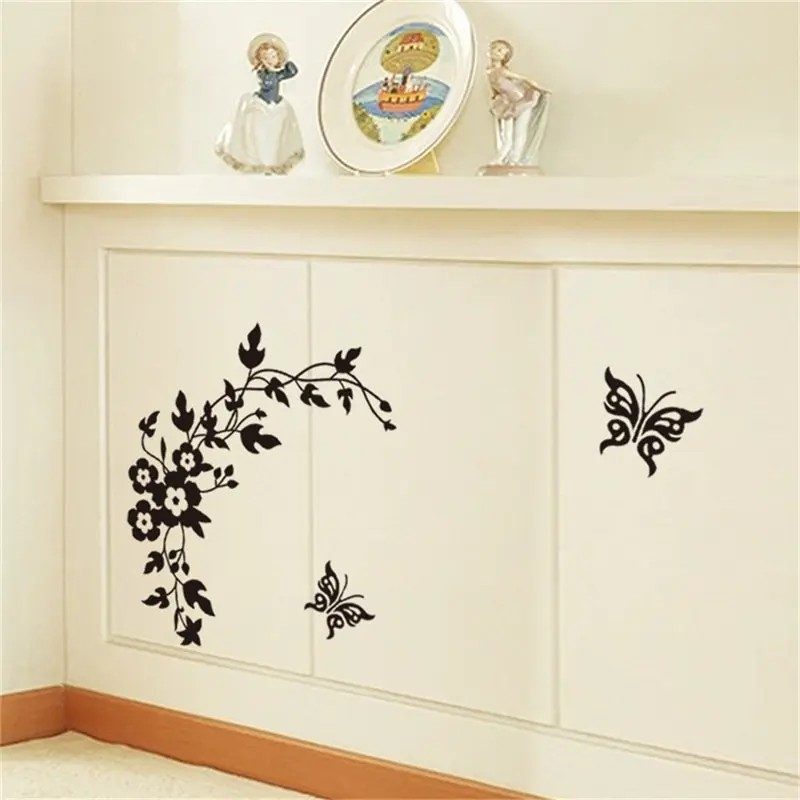 Înviorați-vă interiorul cu acest autocolant elegant de perete cu motivul unei plante cu flori și a doi fluturi.