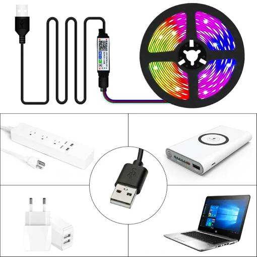 Banda LED RGB flexibilă de 5V cu tensiune joasă și control complet al culorilor oferă o gamă largă de moduri de iluminare și tranziții line. Puteți alege dintre peste 16 milioane de nuanțe și puteți programa efecte dinamice: