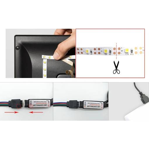 Pachetul include disc pentru bandă LED, controler și cablu USB.