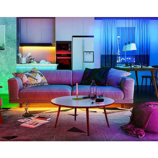Datorită telecomenzii, puteți seta cu ușurință atmosfera ideală - de la iluminare de fundal delicată la tranziții dinamice de culoare. Perfectă pentru sufragerie, dormitor, colț de jocuri, iluminare de fundal pentru televizor sau decorațiuni de petrecere.